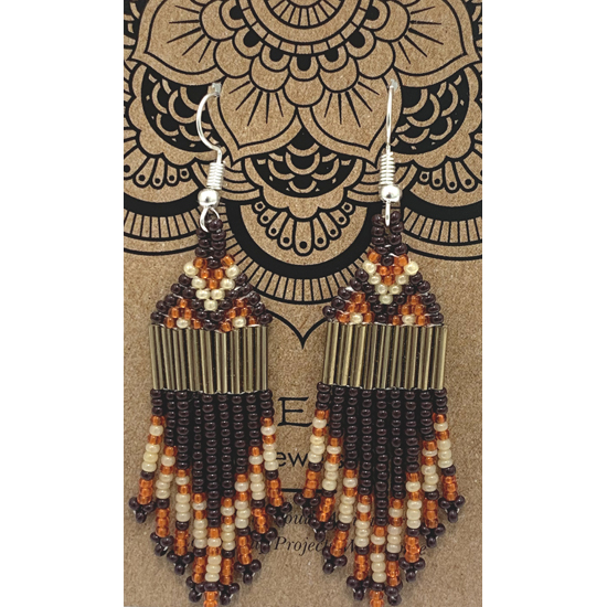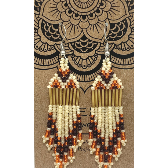 Orange & Cream & Brown - earrings Earrings ZJE40D In Stock $19.00